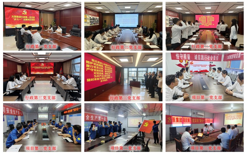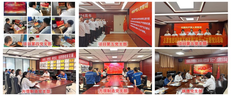 行政第一黨支部、行政第二黨支部、行政第三黨支部、項目第一黨支部、項目第二黨支部、項目第三黨支部、項目第四黨支部(線上開展)、項目第五黨支部、方垠制造黨支部、鐵鷹黨支部圍繞“慶祝黨的生日,我該怎么做”、“立足崗位作貢獻”、“黨建+項目”和“黨業(yè)深度融合”等主題組織開展專題座談會進行深入研討,認真組織黨員學(xué)習(xí)習(xí)近平總書記重要講話精神、講授專題黨課、深入學(xué)習(xí)研討企業(yè)文化,并集體重溫入黨誓詞等。